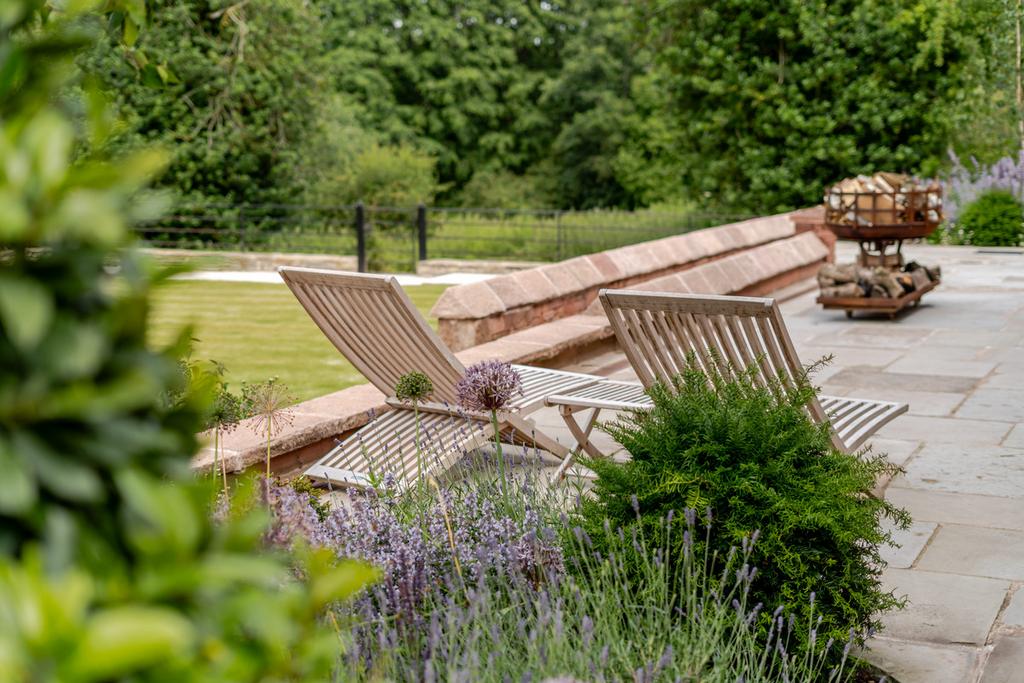 The professionally landscaped gardens are a particular highlight. York stone patios wrap around the property, following the sun throughout the day. Meticulously built dry stone walls frame the fabulous sunken garden with its pristine lawn. Borders are planted with Annabelles, shrubs, stocks, and abundant topiary, with a striking olive tree positioned near the French doors of the kitchen.