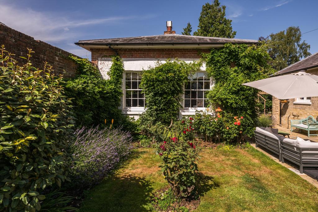Outside, the house is approached over a gravel driveway leading to the house and parking area. Wooden gates lead through to the gardens and front door.