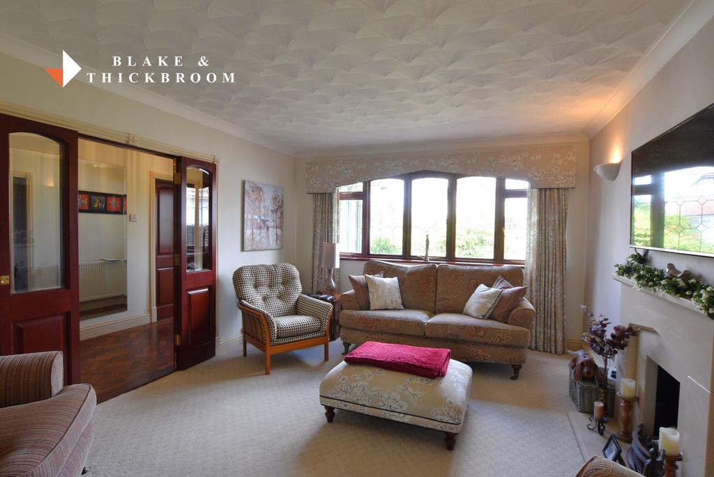 Spacious L Shaped area with timber parquet flooring, service door to integral garage (offering huge potential for conversion) Stairs flight to first floor, doors to ground floor WC, kitchen and folding double doors giving access to sitting room.