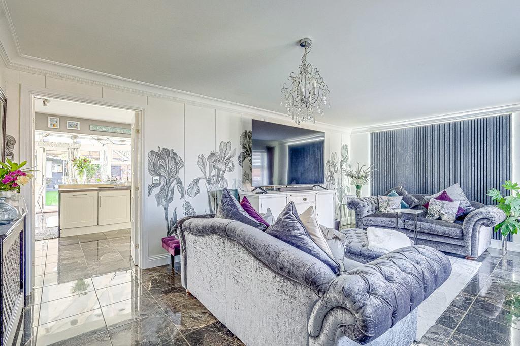 Step through the front door into a bright and welcoming entrance hall that leads into a spacious lounge, ideal for relaxing evenings or entertaining guests. The open-plan kitchen flows effortlessly into a conservatory, bringing in plenty of natural light and offering views of the garden, perfect for family meals or a quiet morning coffee. A separate utility room adds practicality, while a downstairs w/c enhances convenience. Tucked away behind the kitchen is a separate room currently used as a bar area but could make the perfect home office.