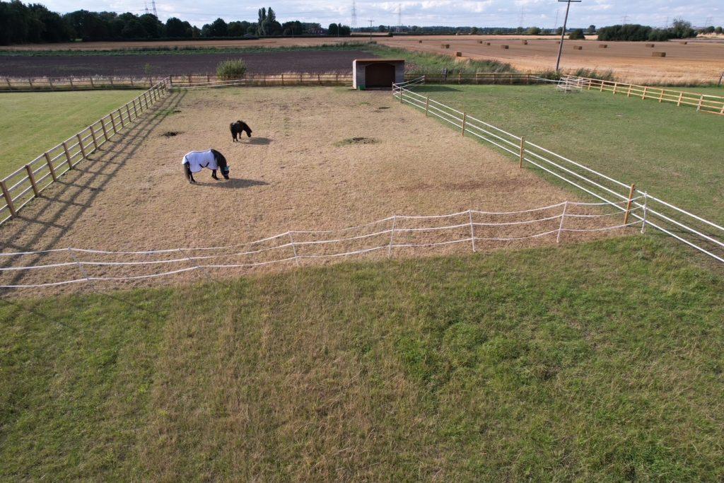 The property benefits from a large, attached double garage which is home to the central heating system, and has internal access through the boot room. The property is approached via a private, stone gravelled road, and sits in approx. two acres (Sts), accessed by a large block paved driveway. Showcasing beautifully finished rear and side gardens, over 300m2 of porcelain tiled patio surrounding the property, an impressive and professionally landscaped hot tub area with artificial grass, composite decking, raised beds and a stone BBQ, the grounds also enjoy an ample lawned area with mature trees and hedges, wildflower borders, a sizeable, barked child's play area, and a separate allotment area with five, large raised beds. The gardens adjoin the 1.3 acre paddock, which is fully post and railed, with a horse shelter, and a recently installed concrete base for a generous “L” shaped stable block, which could house four stables, a tack room, wash room, and hay store.