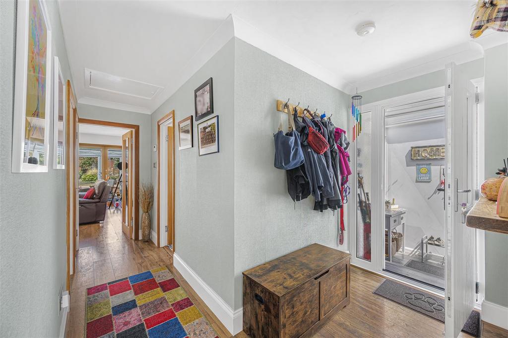 The entrance has an enclosed porch with a double glazed door and rear window. The entrance has a radiator, a linen cupboard and access to the loft which is part boarded.