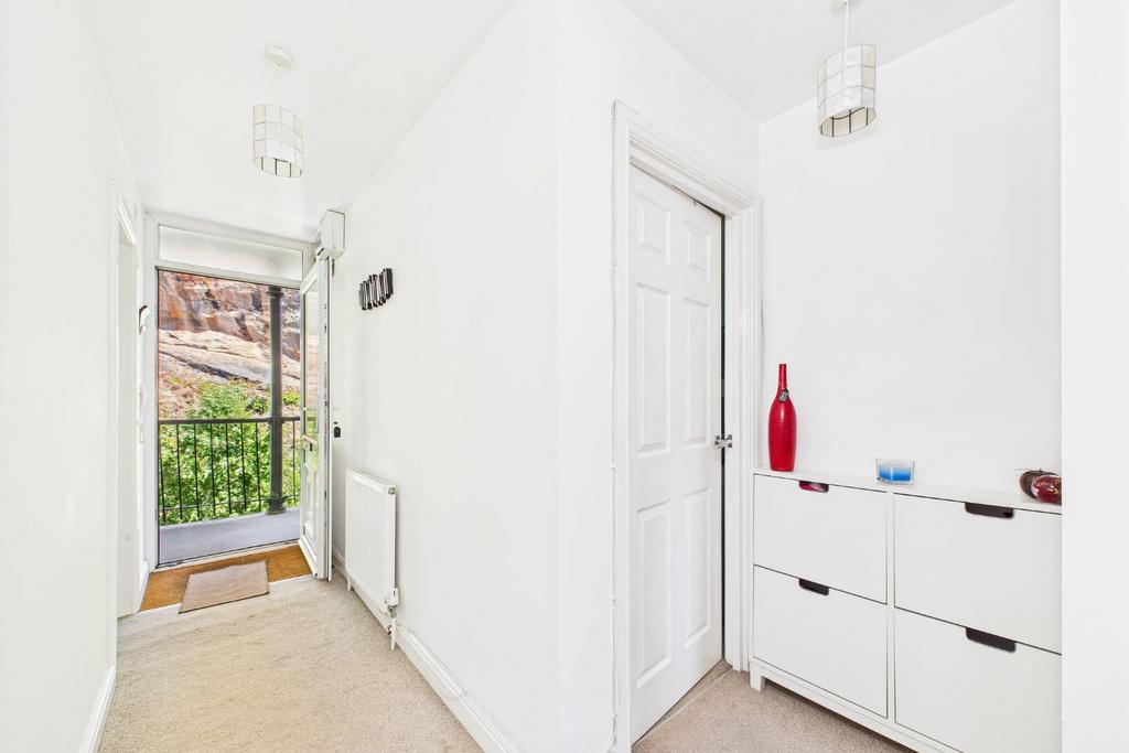 Occupying an end position within the building, the flat benefits from its own use of the adjoining walkway as a balcony-like outdoor space, an ideal spot to take in the serene outlook over the natural rock face without interruption from passing neighbours.