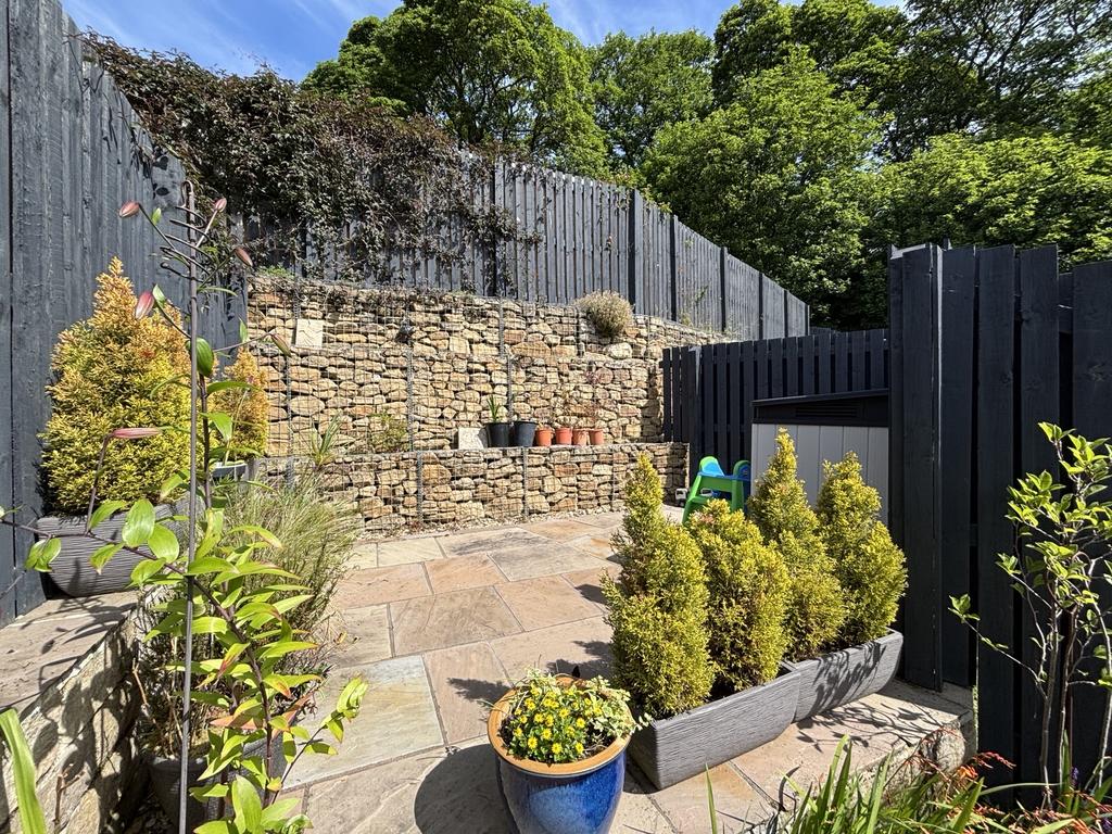 Outside. The property has a lawn garden to the side, lawn and patio to the rear with additional seating area at the top of the rear garden and a driveway to the front.