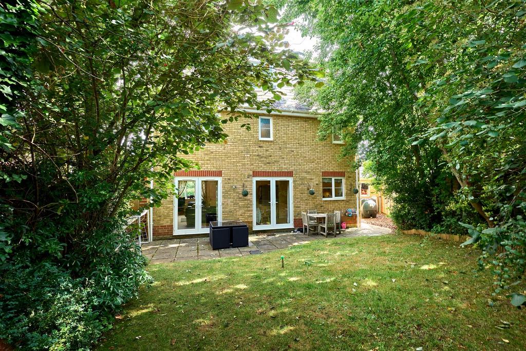 Externally the property is at the end of a spur road with a detached double garage. The property benefits from an open aspect to the front overlooking green space. The rear garden is bordered by mature trees and is laid principally to lawn. There is a paved patio for alfresco dining.