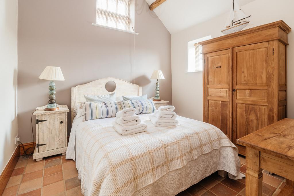 Curlew Cottage: Currently utilized as the site manager's residence, this spacious cottage sleeps up to six guests. It features antique wrought iron beds, a roll-top bath, a well-equipped kitchen, and a living area with a gas stove.