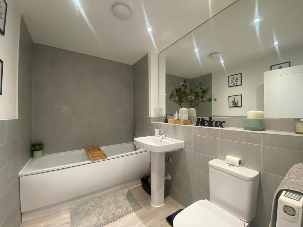 The first floor comprises of a modern, sleek kitchen/ dining area with all necessities. The bright, light & airy large living room makes a perfect space for relaxing, with patio doors leading onto the garden. Ideal for relaxing or entertaining. Added benefit of downstairs WC.