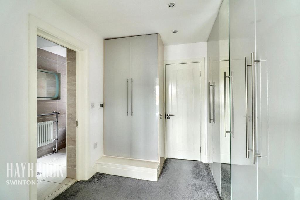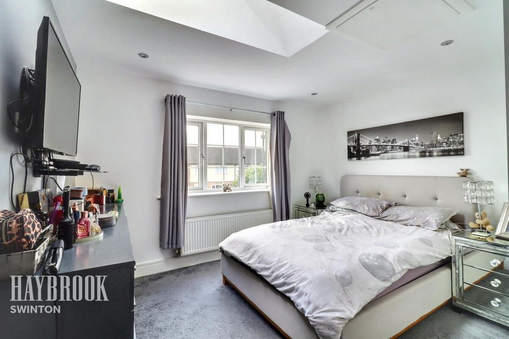 Upstairs, you’ll find three generous double bedrooms, each complete with fitted wardrobes to maximise storage. The master suite is a standout feature, boasting a luxurious en-suite shower room and a walk-in wardrobe, offering both comfort and convenience.