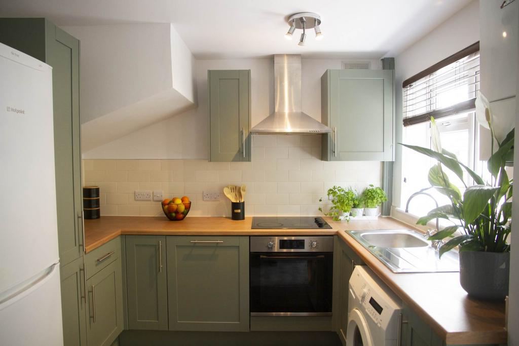 9'7 x 6'7. uPVC double glazed window overlooking the rear garden. Stainless steel sink unit with mixer tap and drainer. Worktop to each side. Lamona 4-ring ceramic hob with stainless steel electric oven, cupboards under. AEG washing machine. Fitted Whirlpool dishwasher. Stainless steel extractor fan. Wall cupboard. Storage cupboard with drawer and cupboard under. Space for fridge/freezer. Tiled splashbacks and floor. Worcester gas fired combination boiler. Spotlighting.