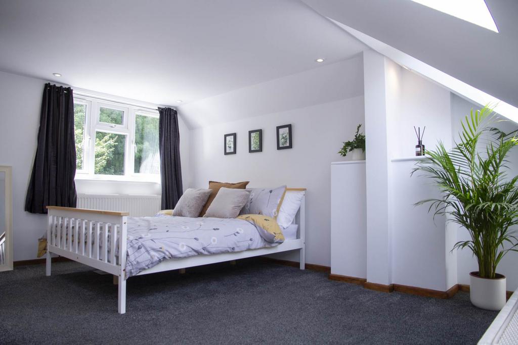 15'4 x 11'4. Double aspect room with 2 Velux windows looking to trees and Winterbourne Close, and uPVC double glazed window overlooking the long south facing rear garden. Hatch to eaves cupboard. Recessed spotlighting and dimmer switch. Radiator. Charging power point. Exposed wood door, architrave and skirtings.