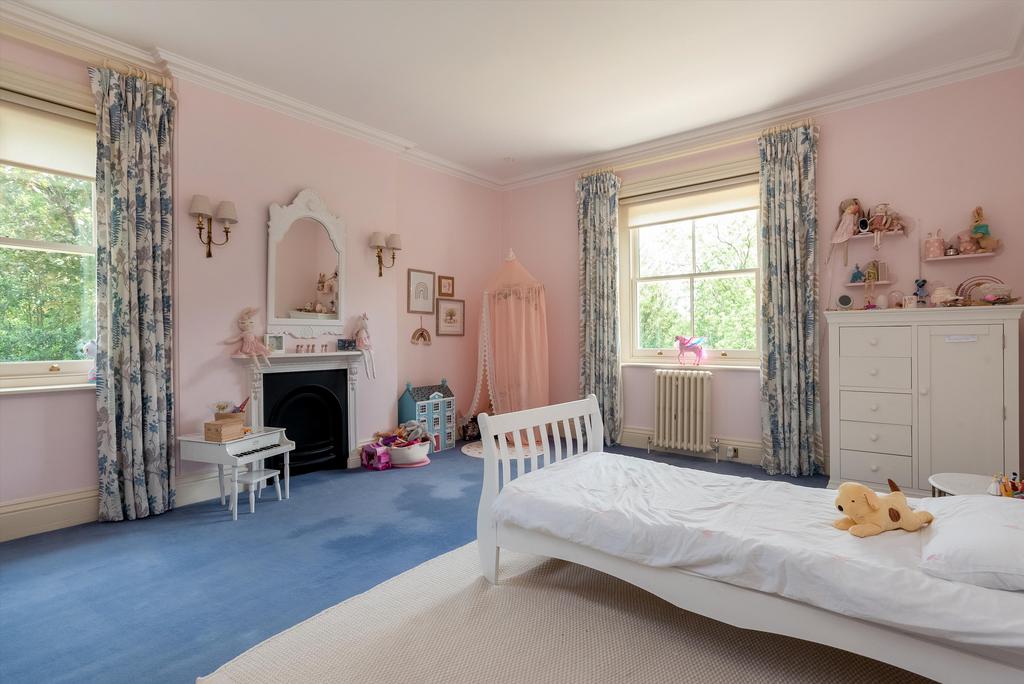 A staircase gives access to the second floor, with a further half-landing with airing cupboard and store. Off the top landing, there are four further bedrooms; bedroom four with study area and walk-in closet, as has bedroom five. Bedroom six with study area and fitted furniture. Bedroom seven/playroom. Further bathroom with twin basins and separate shower.
