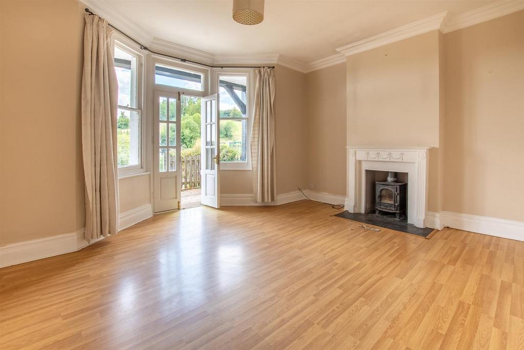 Sitting Room - 4.67m x 3.47m (15'3" x 11'4") - Bay window to front aspect with french doors to verandah and front garden, enjoying delightful sylvan views. Classical style fire surround with wood burning stove. Corniced ceiling and light rose. Radiator.