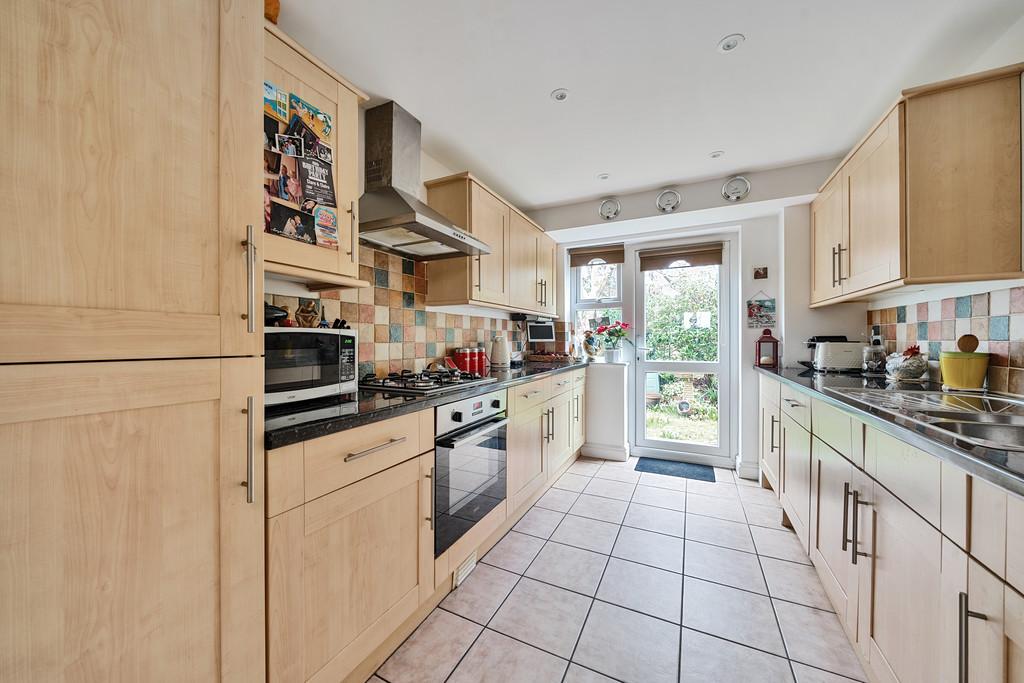 - Appliances include washing machine, dishwasher, fridge freezer, door out to garden.