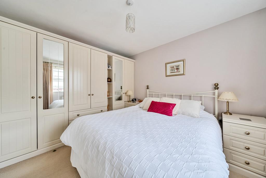 Bedroom 2 has fitted wardrobe furniture which includes ample hanging space, a chest of drawers and matching bedside cabinets.