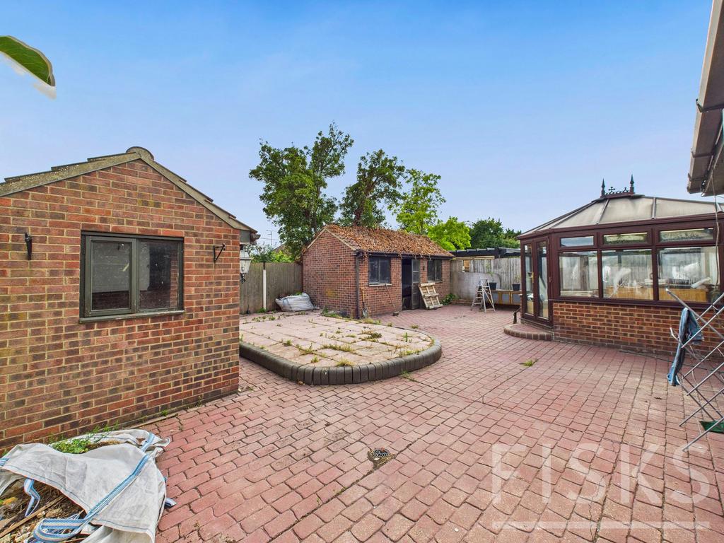 Externally, the plot is equally impressive. A spacious driveway provides ample off-road parking and leads to a large double garage, while two additional outbuildings offer versatile use for storage, workshops, or home offices.