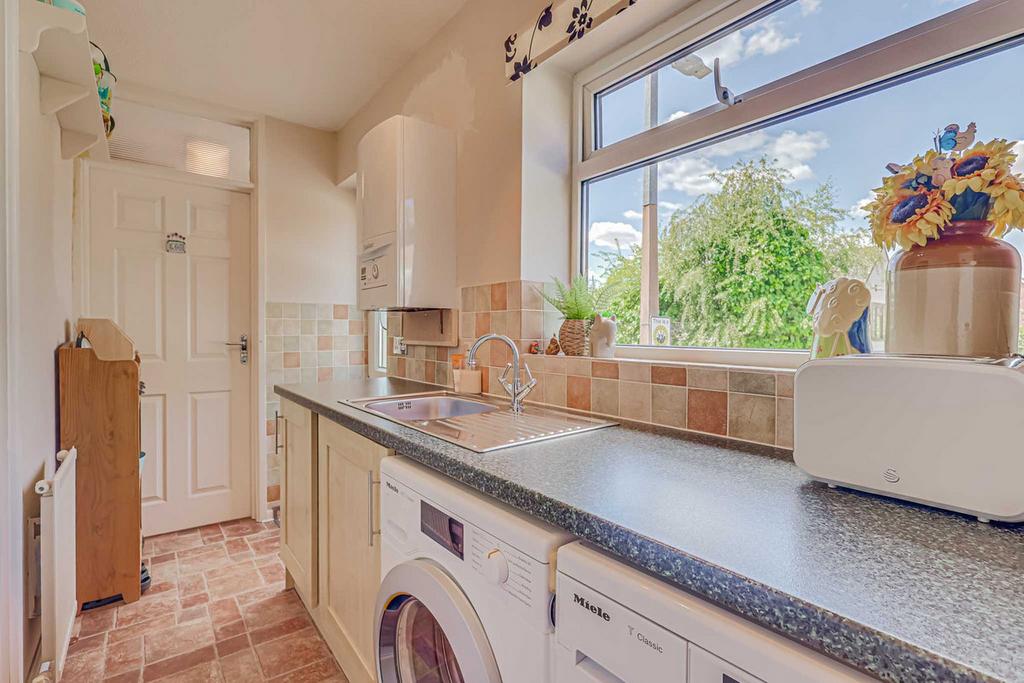 As you step through the front door, you are welcomed into a hallway with stairs rising to the first floor and doors leading to the principal reception spaces. The spacious and bright lounge, ideal for unwinding, opens seamlessly into the generous dining room, creating a wonderful open-plan feel perfect for family meals and entertaining guests. The kitchen is well-equipped with several appliances and leads directly into a useful utility room, while a convenient ground floor w/c completes this level.