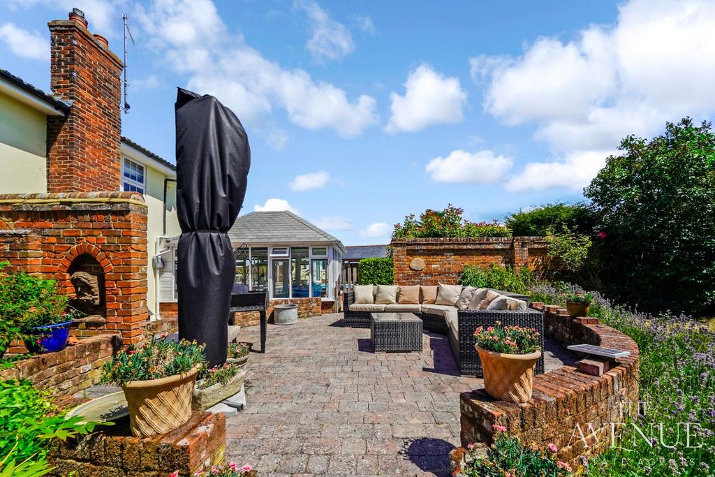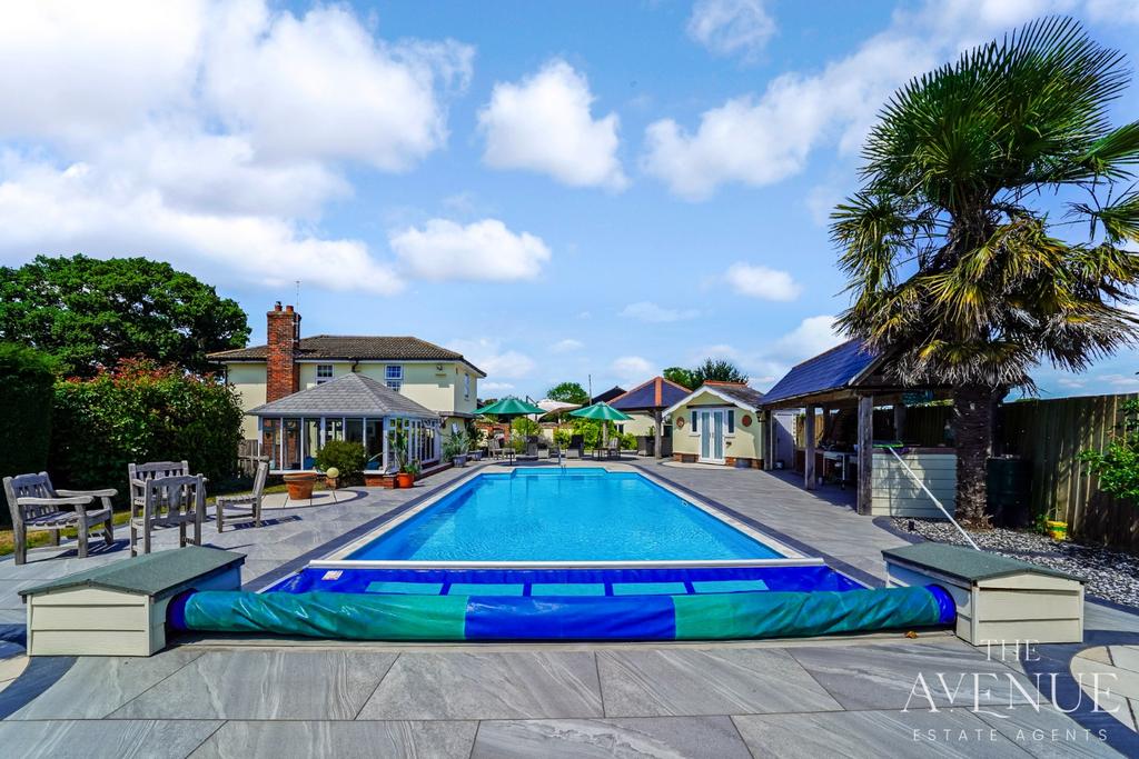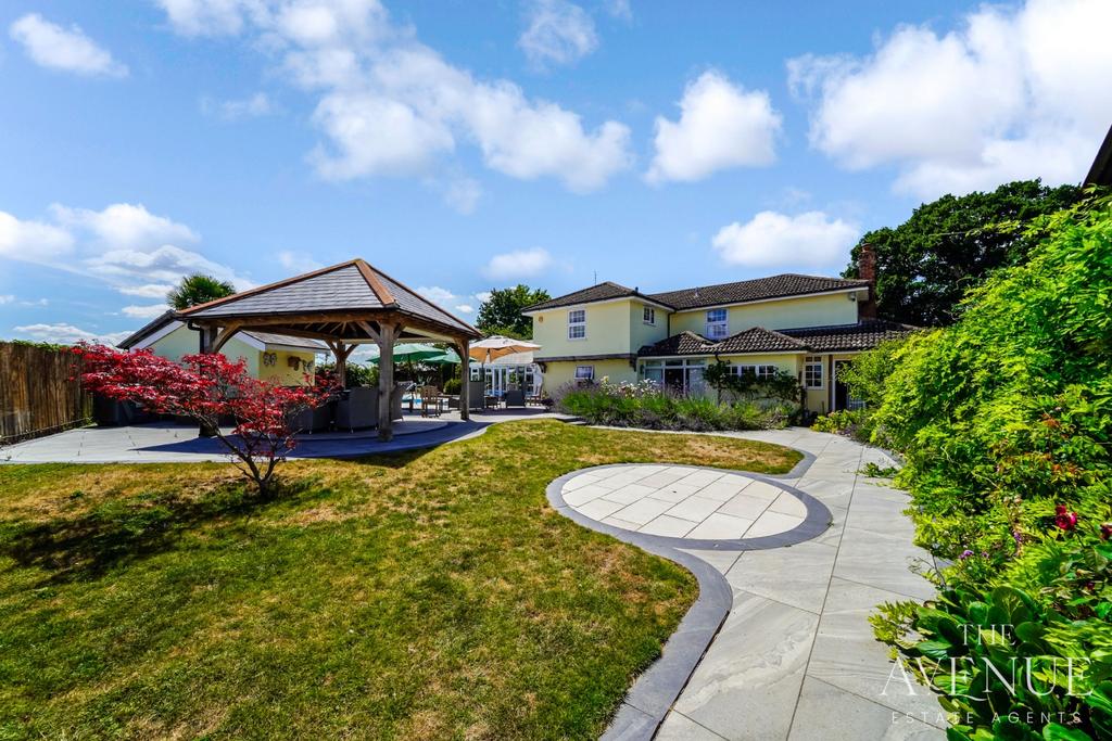 Externally, the property is equally impressive. The front garden, is mature and beautifully landscaped with stunning views, a raised seating area with small pond is the perfect place to enjoy a morning coffee. The Garden is also home to a a magnificent 400-year-old oak tree that offers stunning year-round interest and a sense of heritage. The rear of the property SE facing with side access has been designed for both entertaining and leisure, boasting a heated swimming pool bordered by quality paved flooring, a hand-crafted oak gazebo, a pool house with changing facilities, and a purpose-built outdoor kitchen with BBQ area. The property offers parking for approximately 10 vehicles including the garage.