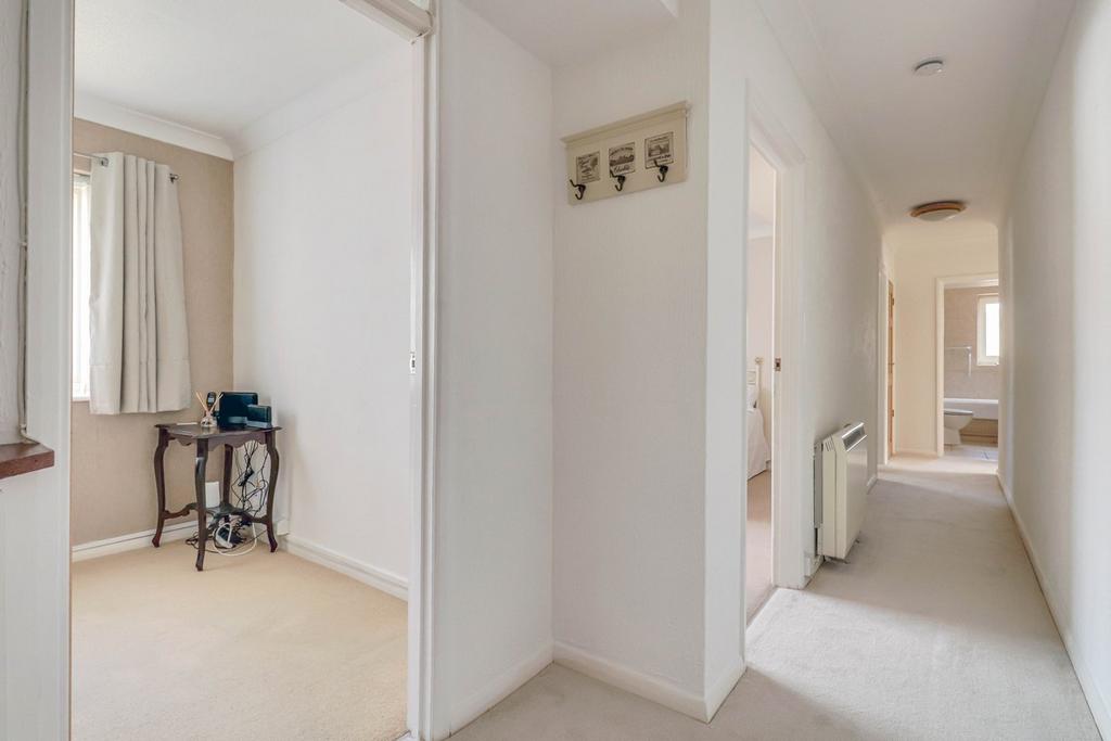 The kitchen comprises a range of eye and base level storage units complemented by the rolled edge work surfaces with inset sink and mixer tap. Tiled splashbacks. Space for freestanding oven, fridge-freezer and washing machine. Built-in storage cupboards. Double glazed window to side aspect.
