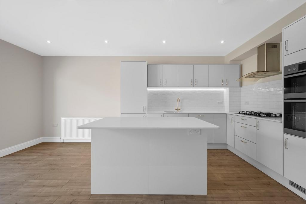 The ground floor features a welcoming entrance hall with a cloakroom, a front-facing living room and an impressive open-plan kitchen/dining/family room—ideal for modern living and entertaining. Upstairs, there are three generously sized bedrooms and two luxurious bathrooms. The standout feature is the principal suite to the front, boasting French doors that open onto a glazed balcony with river views, a fully fitted dressing room and a stylish ensuite shower room.