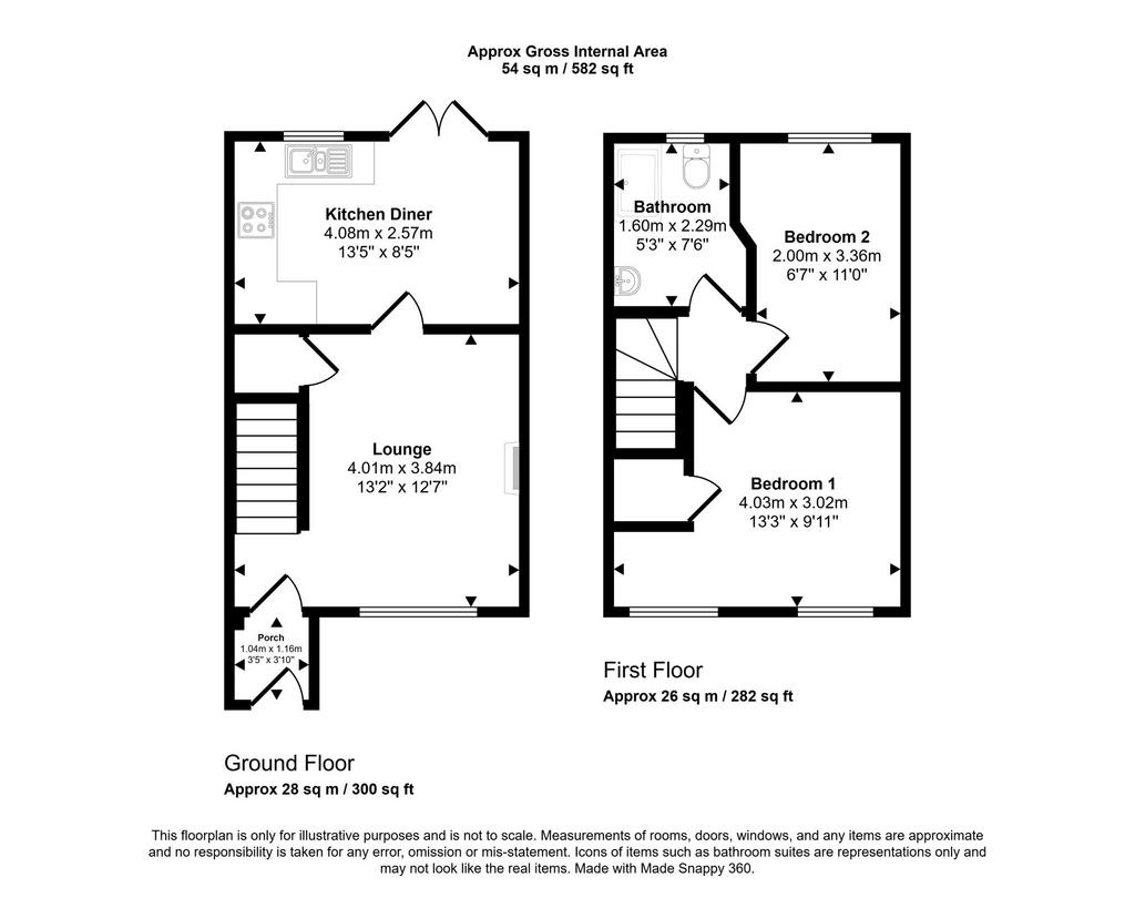 As you enter you are greeted by a: bright and welcoming lounge ideal for relaxing or entertaining, with neutral décor and large windows allowing plenty of natural light, a generous modern kitchen/diner boasting ample storage, space for dining, and direct access to the rear garden – perfect for everyday family meals or hosting friends. Upstairs you will find two comfortable double bedrooms, both tastefully decorated and offering excellent space for furnishings, and a family bathroom complete with a white suite, walk in shower and contemporary tiling. Externally there is a private driveway, providing off-street parking for residents and low-maintenance outdoor spaces to the front and rear. The rear garden offers a enclosed area, ideal for children, pets, or summer barbecues.