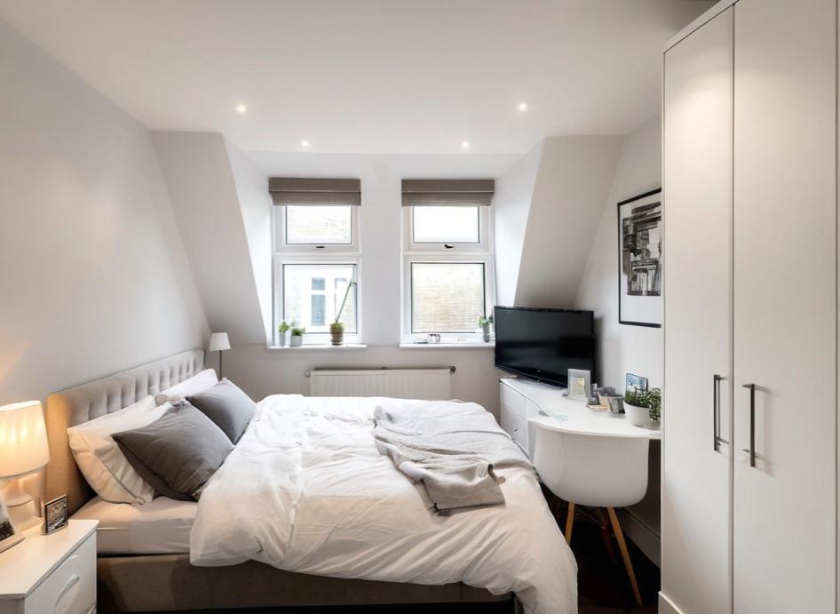 The generously sized principal bedroom benefits from a built-in wardrobe and a luxurious en suite bathroom. A second double bedroom and a high-spec family bathroom complete the layout, making this property perfect for professionals or sharers.