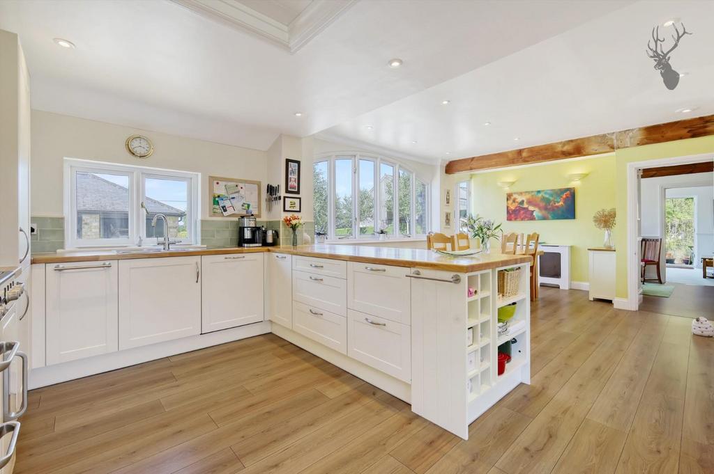 Just off the kitchen lies a separate study, ideal for remote working or a creative space. A utility room is conveniently located within the attached garage, offering practicality without compromising on style. A ground floor W/C completes this level.