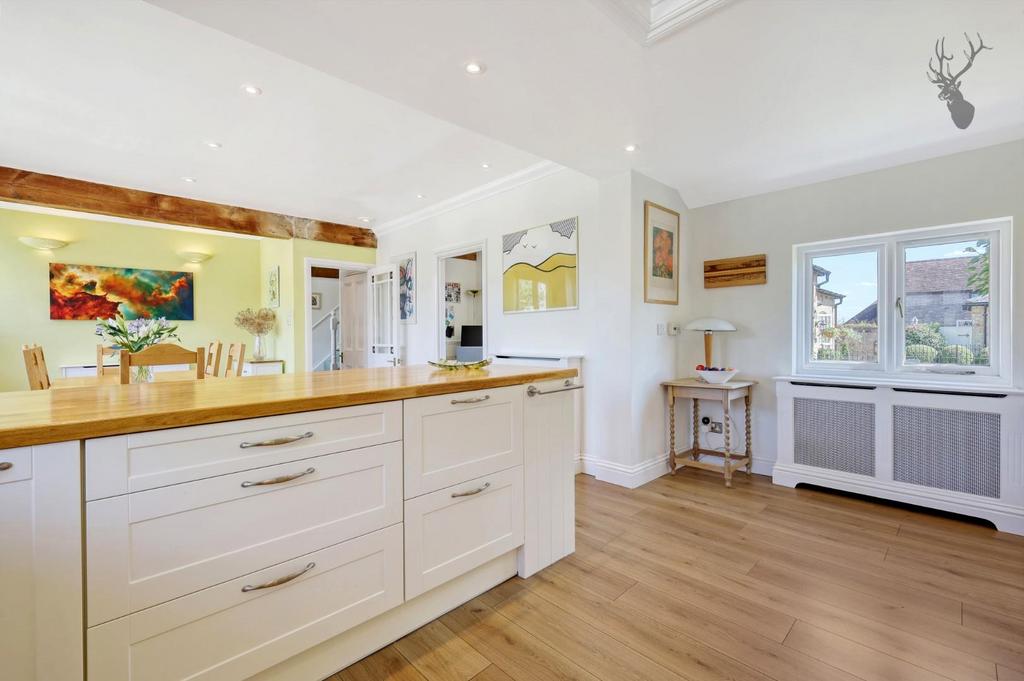 Upon entering, a centralised entrance hall welcomes you into the home, with doors branching off to a formal reception room, perfect for entertaining or unwinding with views of the garden terrace and on the opposite side, a show-stopping open-plan kitchen/dining area, seamlessly designed for modern living and gatherings.