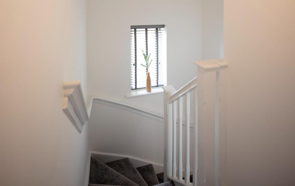 with bi-fold doors to the rear garden, utility room & spacious lounge. The first floor landing boasts a master bedroom with en-suite facilities & built-in wardrobe, three further bedrooms & family bathroom & storage.