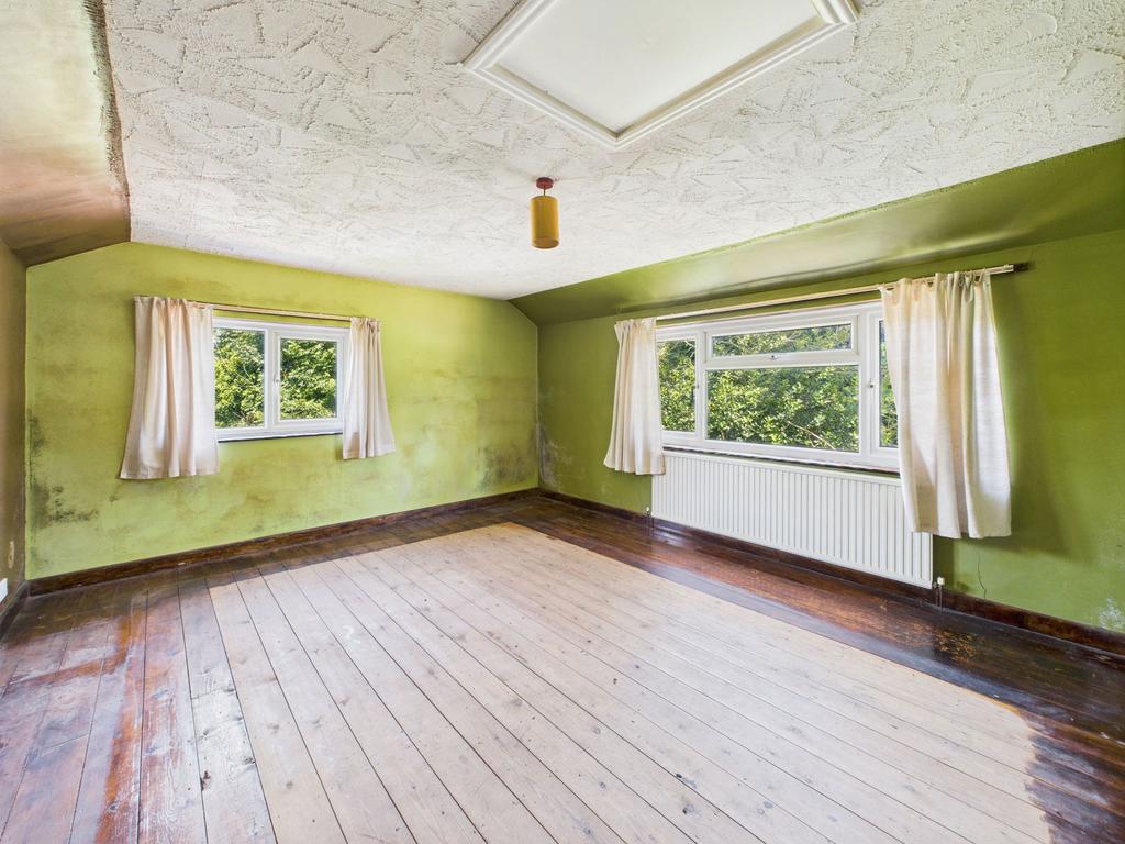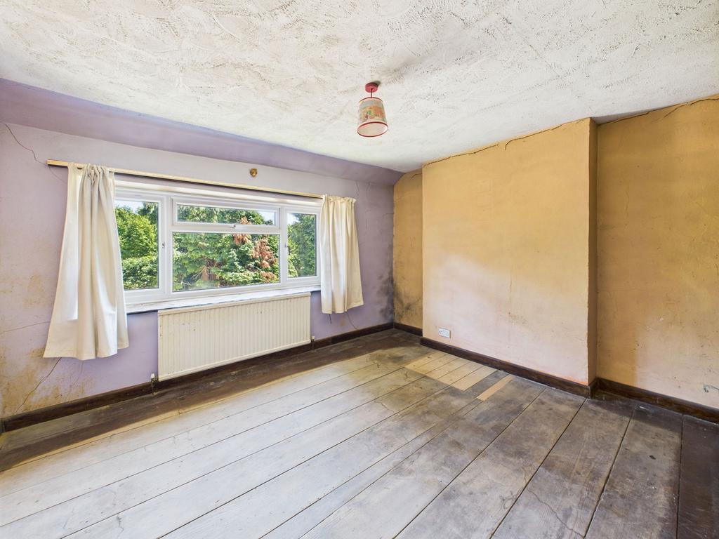 Bedroom Three overlooks the front aspect and is filled with natural light from a wide window. With stripped wooden floorboards and neutral walls, the room offers a blank canvas for renovation or decorating as a cosy single bedroom, home office, or nursery.