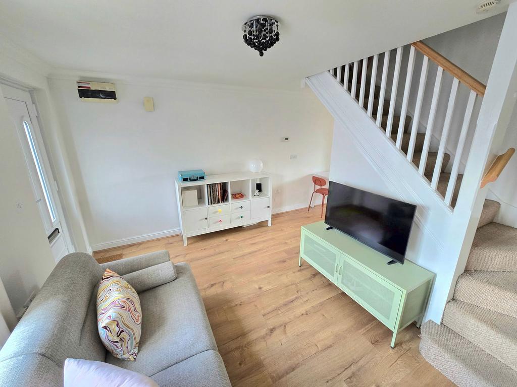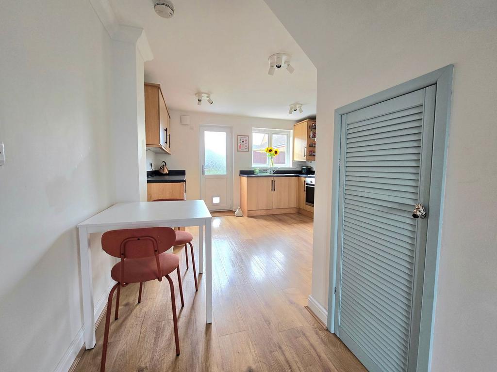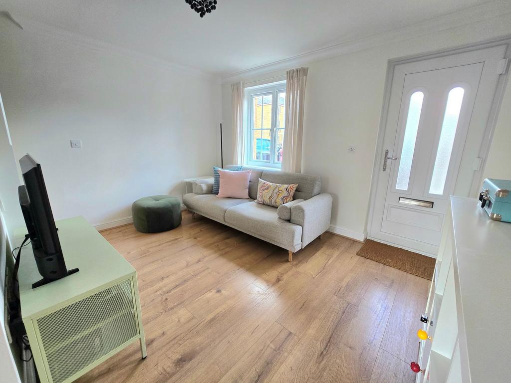 Upvc double glazed window and door to front. Radiator. Stairs to first floor with under stairs storage cupboard. Laminate flooring.