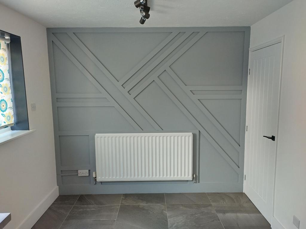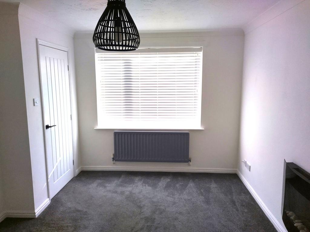 A front facing reception room with ceiling light, central heating radiator, uPVC double glazed window and the main focal point being a wall mounted electric fire.