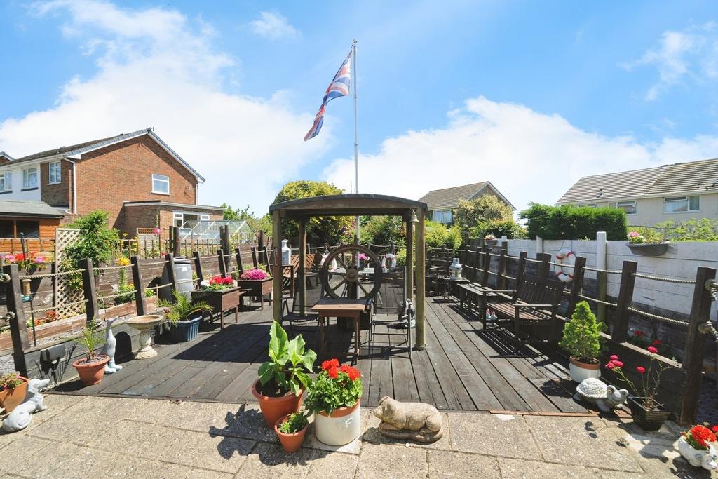 The property enjoys a well-presented outdoor space, beginning with a block-paved driveway at the front, offering off-road parking for multiple vehicles. To the rear, the private and predominantly level garden benefits from a sunny aspect and is thoughtfully landscaped for low-maintenance living. It features a spacious paved area and a unique boat-shaped decked terrace, ideal for outdoor seating and entertaining. The garden also includes two useful storage sheds, one equipped with lighting, along with exterior power points, a variety of mature shrubs, and secure fenced boundaries. Side access allows easy entry from the front of the property. Completing the external amenities is a generous garage (5.33m x 2.51m / 17'6" x 8'3") with an electric up-and-over door, power, lighting, and a personal access door to the rear.