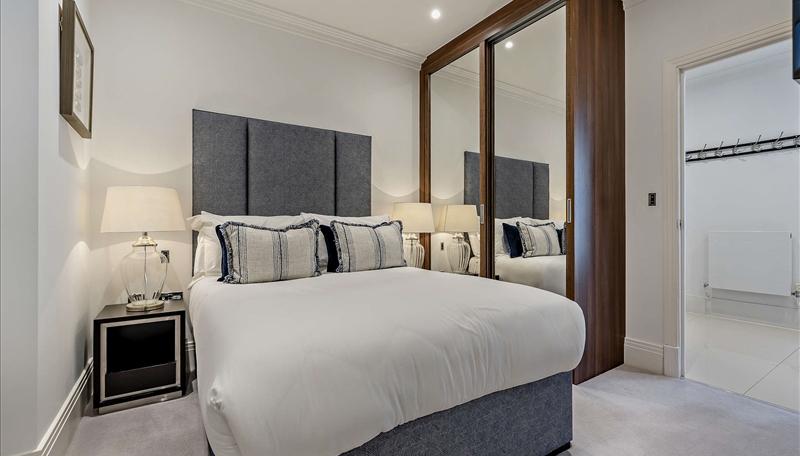 900 sq/ft of luxury living including two bedrooms with en-suite bathrooms, a large open plan kitchen/reception opening onto a small private garden, perfect for entertaining, and a separate WC. The fully fitted Metris Kitchen is complete with Miele appliances including an integrated dishwasher, washer/dryer, full height fridge freezer, oven, hob and integrated extractor fan as well as a Caple wine cooler. The bathrooms comprise of full bathroom suites with underfloor heating whilst the bedrooms boast bespoke mirrored wardrobes and automatic lights which are sure to impress. Further benefits of the apartment include a Crestron audio visual system, a digital video door entry system and pre-wiring for Sky + TV.