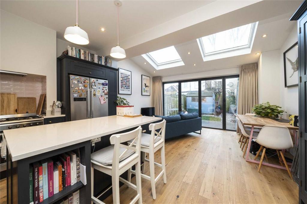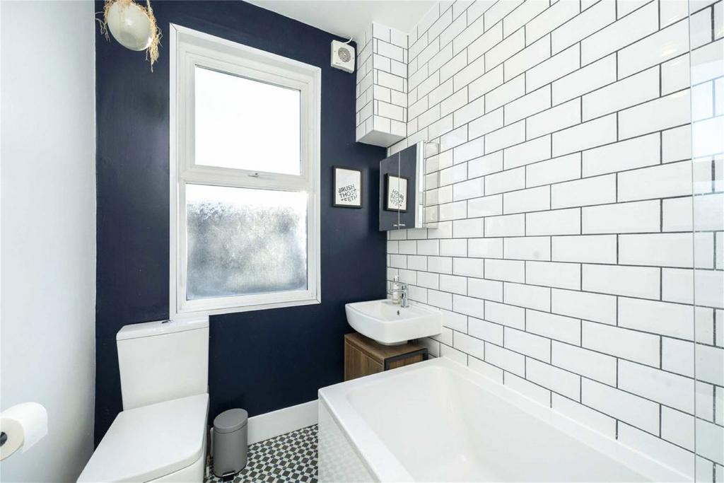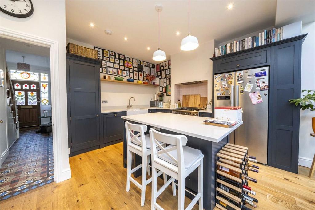 This charming house is flooded with natural light and has been finished to exacting standards throughout. The reception room comprises a bay window, feature fireplace and wooden flooring. The hallway leading to the kitchen has original tiling, and the kitchen itself comes fully fitted, has an island and breakfast bar and leads on to the large private garden through bi-fold doors. This floor also offers a downstairs WC. The first floor boasts a large double bedroom with a bay window and walk-in-wardrobe, good sized second double bedroom and a modern bathroom. The top floor comprises a large double bedroom with built in storage and a smart en suite bathroom with a rainfall shower.