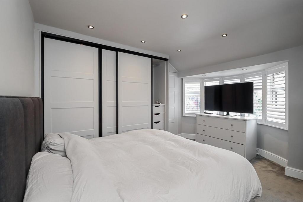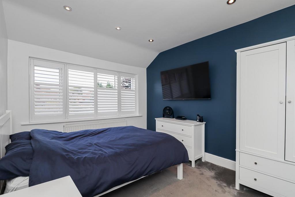 Bedroom 1 - 4.17m x 4.09m (13'8" x 13'5") - PVCu double glazed bay window to the front with plantation shutters. Fitted wardrobes and drawers. Recessed low voltage lighting.