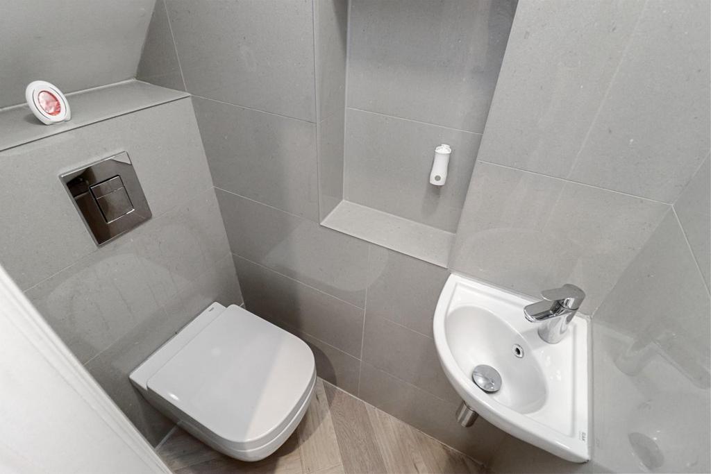 Cloakroom - With WC and wash hand basin. Tiled walls. Extractor fan.