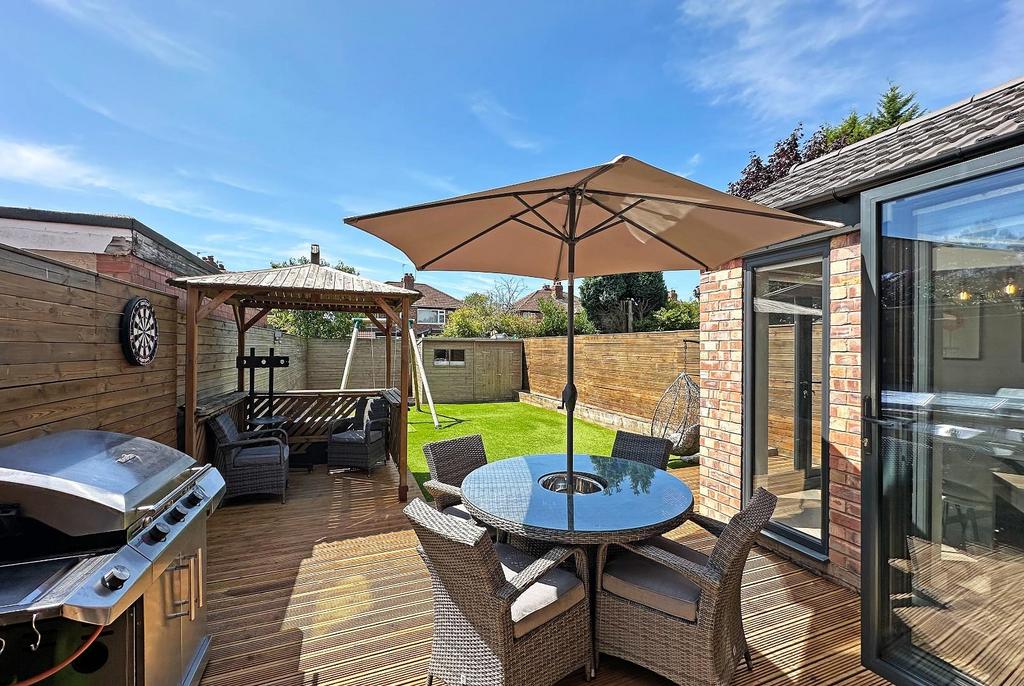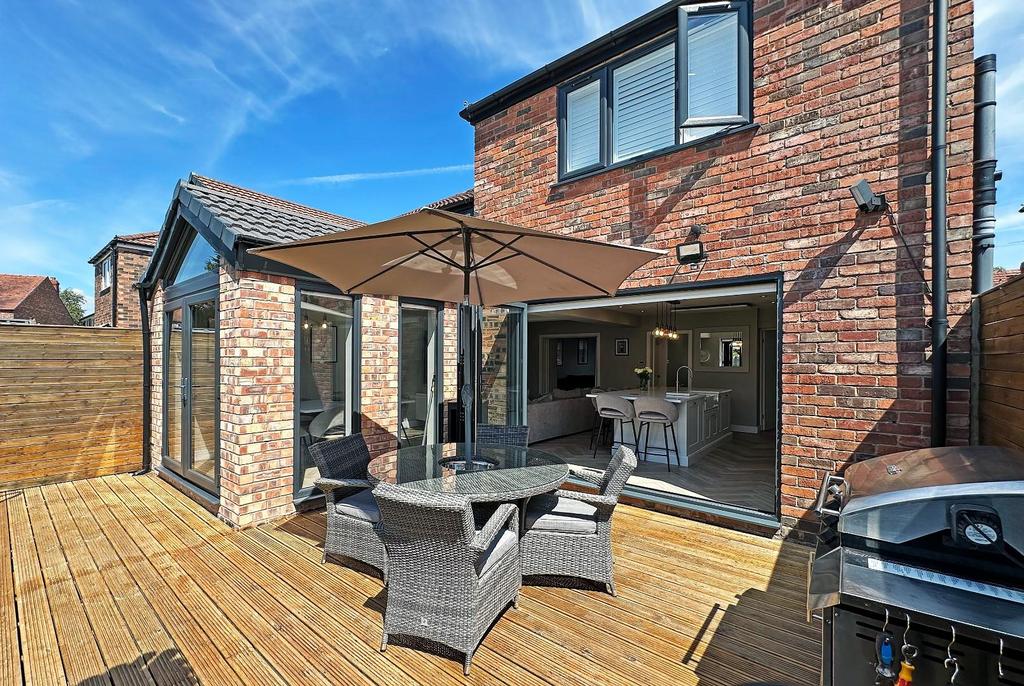 To the front of the property the block paved drive provides off road parking whilst to the rear the gardens incorporate a large decked seating area accessed via the open plan space and with gardens beyond laid with artificial grass all benefitting from a southerly aspect to enjoy the sun all day.