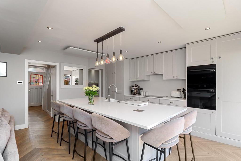 An extended and renovated semi detached family home in an ideal location and presented to a high standard. The accommodation briefly comprises recessed porch, entrance hall with access to cloakroom/WC, separate bay fronted sitting room whilst to the rear is an impressive open plan living dining kitchen with central island and bi folding doors to the rear gardens plus adjacent utility room. To the first floor the principal bedroom benefits from an en-suite shower room/WC and there are three further double bedrooms serviced by the family bathroom/WC fitted with a contemporary suite. The driveway to the front provides off road parking whilst to the rear there is a large decked seating area with gardens beyond laid with artificial grass and all benefitting from a southerly aspect to enjoy the sun all day. Viewing is essential to appreciate the standard of accommodation on offer.