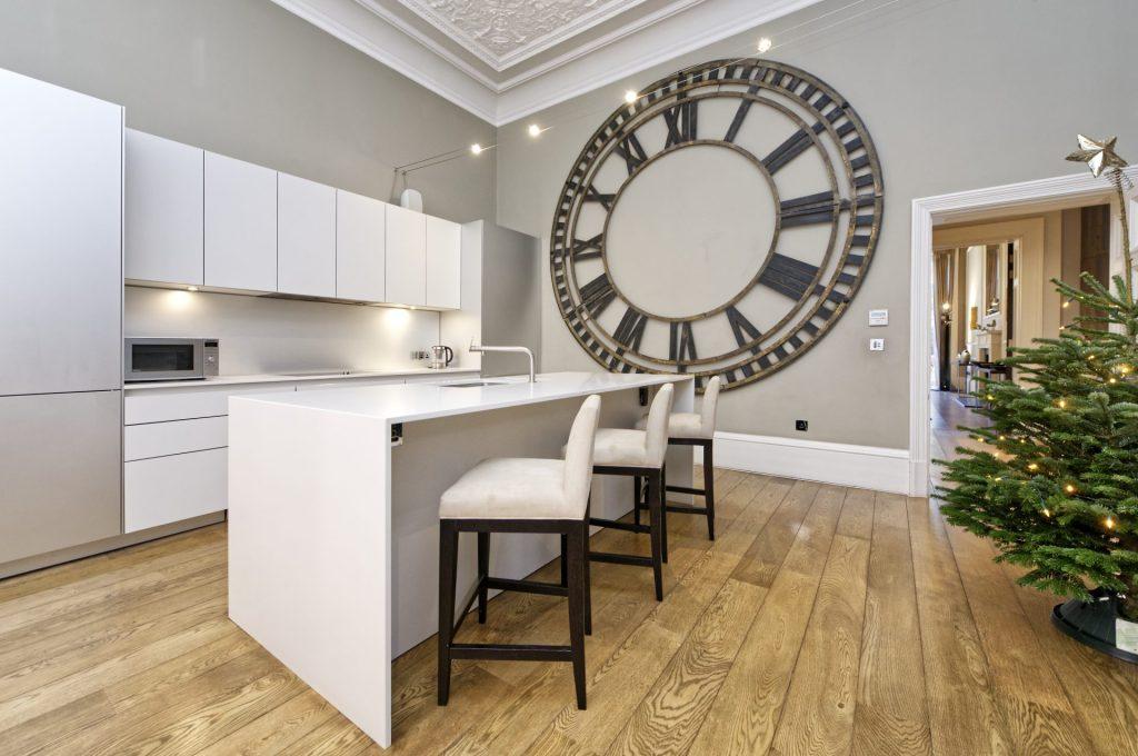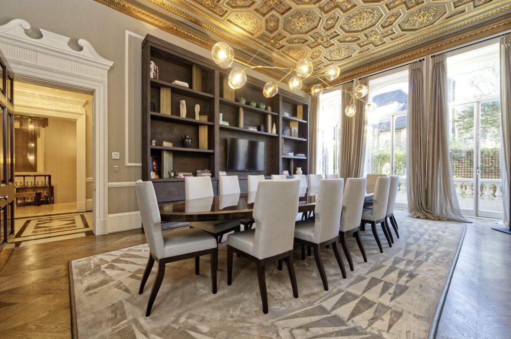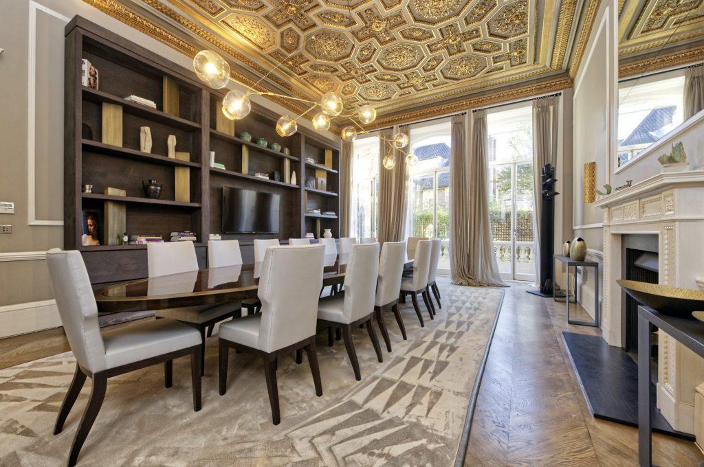 There are five double bedrooms, with a stunning principal suite and then four further double bedrooms all with marble en-suite bathrooms. Other features include, laundry room, guest cloakroom, hard wood floors throughout the ground floor, air conditioning throughout, sophisticated sound and AV system, working gas fires in the kitchen, drawing room, dining room and media room, triple glazed front facing windows, and original ceilings with beautiful murals and intricate cornicing. There is a daily porter Monday to Friday looking after the building.