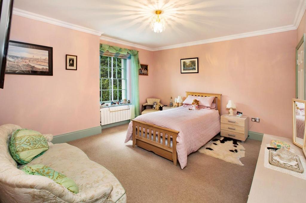 A particularly spacious and lovely en-suite with feature large floor tiles and a three piece suite comprising a low level WC, Roca wall mounted wash hand basin with mixer tap, beautifully tiled shower cubicle with dual controls and large shower head. Tiled display ledge with large mirror above, spotlights to ceiling, extractor fan, ladder style radiator/towel rail, medicine cabinet, two rear facing sliding sash windows have lovely views across the sweeping grounds of Huntly with the estuary and rolling countryside beyond.