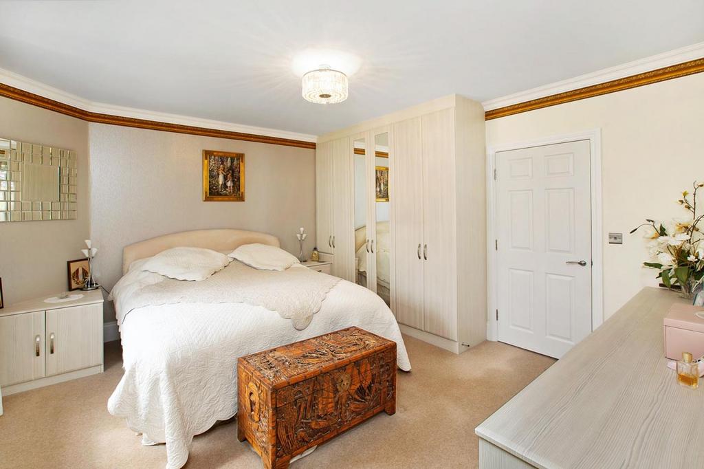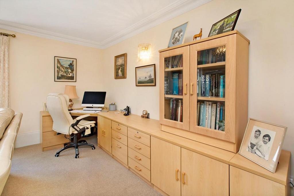 Another appealing and attractive room with a cornice to the ceiling and a secondary double glazed small-paned sliding-sash window overlooks the approach lane. Radiator. The main part of the room opens to a large recessed dressing space with a built-in triple wardrobe with sliding mirrored doors, along with an additional built-in unit with dressing table having drawers beneath and cupboards above. Bedroom 2 opens to the....
