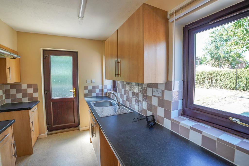 Wall and floor mounted units, two double glazed windows to rear aspect, space and plumbing for freestanding washing machine, space for freestanding cooker, space for freestanding tumble dryer, sink with drainer and mixer tap, and UPVC door with double glazed obscure glass to the left aspect. Double panel radiator.