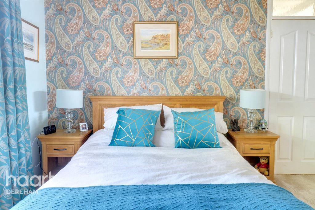 The second bedroom is another well-sized double room, currently used as a cosy snug. With a rear-facing window looking out over the garden and fields beyond, it’s a bright and peaceful space that can easily function as a bedroom, home office, or reading room. The third bedroom faces the front of the property and is similarly light and spacious, making it ideal for guests, children, or as a dedicated study.