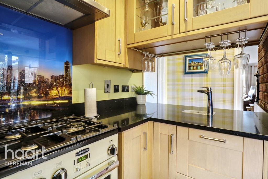 The lounge/dining room is a standout feature of the property, offering generous proportions and flexibility. A bay window to the front floods the space with natural light, creating a warm, open feel. A handsome brick-built fireplace with an inset log-burning stove adds character and cosiness, making it a perfect place to unwind in the colder months. With ample space for both comfortable seating and a full-sized dining table, this room easily serves both everyday family living and entertaining.