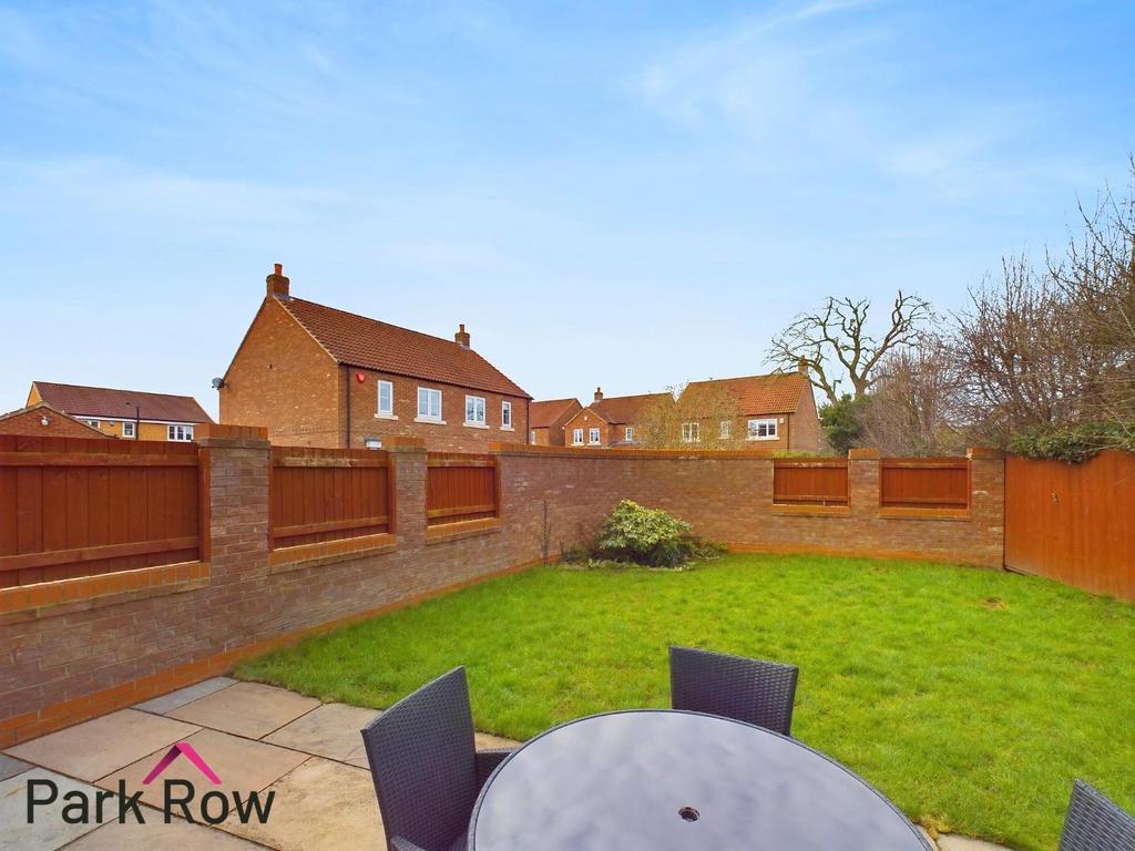 Rear - Accessed via the wooden pedestrian access gate down the side of the property, the patio doors in the kitchen or the door in the utility where you will step out onto: a paved area with space for seating, space for a shed, the rest is mainly laid to lawn, perimeter fencing to the right hand side and a curved wall and fencing to the remaining perimeters, outside lighting and outside tap.