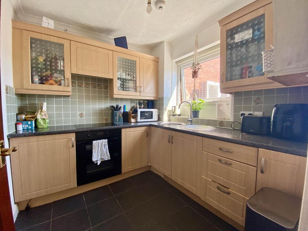 Double glazed window to the rear. Range of base cupboard and drawer units. Wall-mounted units. Work top surface. Tiled splash back. Inset circular sink unit and drainer. 4 ring ceramic hob. Integrated electric oven. Cooker hood over. Tiled flooring.