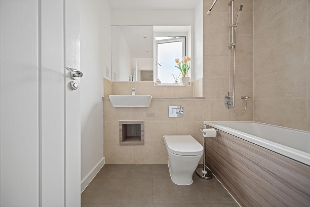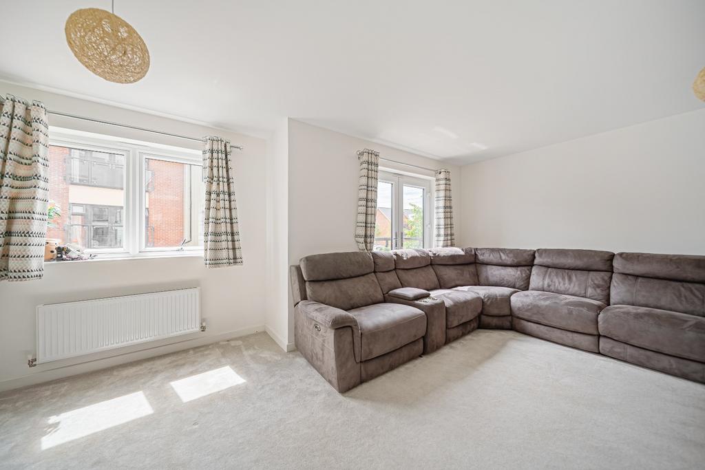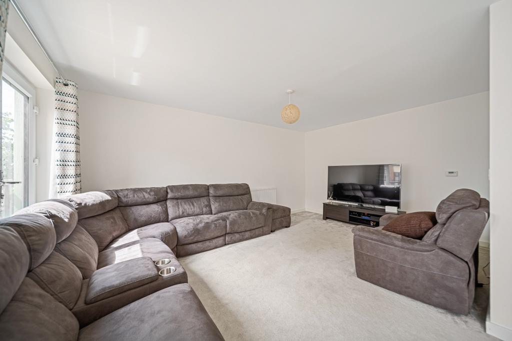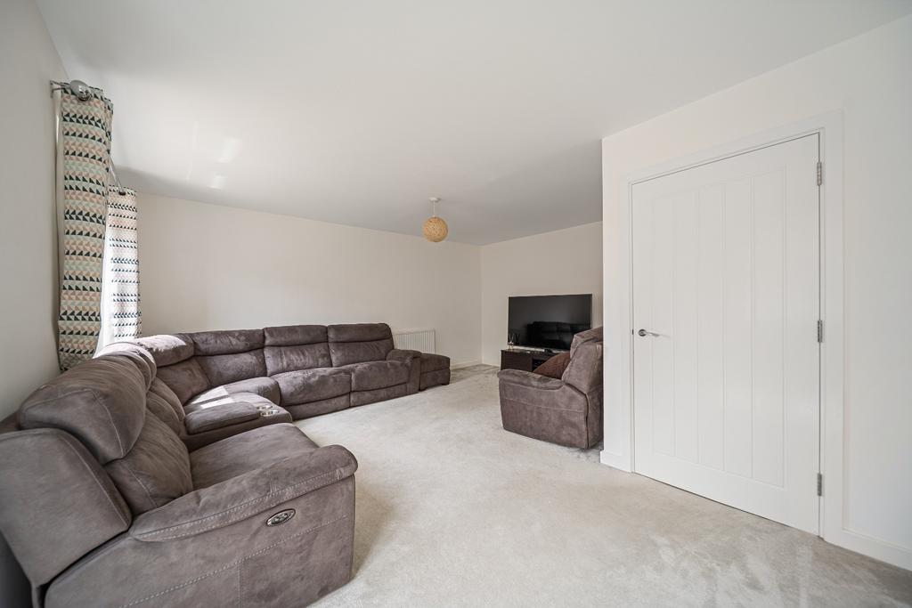 The first floor offers a modern family bathroom with shower head over bath, part-tiled in calming, natural tones and finished with a warm wood tones. A generously sized lounge, decorated in soft tones, benefits from a Juliet balcony that invites the outside in. This floor also includes a versatile bedroom, perfect as a guest room, office, or playroom.