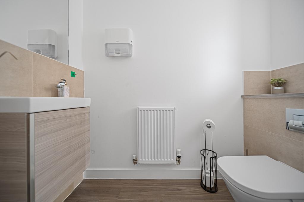 Also on the ground floor, you'll find a practical and stylish downstairs WC and direct internal access to the garage, which has been enhanced with soft-tiled flooring and wall-mounted storage, making it both practical and versatile.