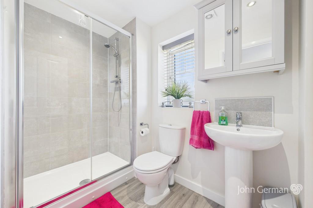 To the first floor the landing has a window providing natural light, and doors leading to the three bedrooms, two of which can accommodate a double bed, plus a fitted family bathroom which has a white suite. The master bedroom benefits from an ensuite shower room, also having a white suite incorporating a double shower cubicle with a shower over.