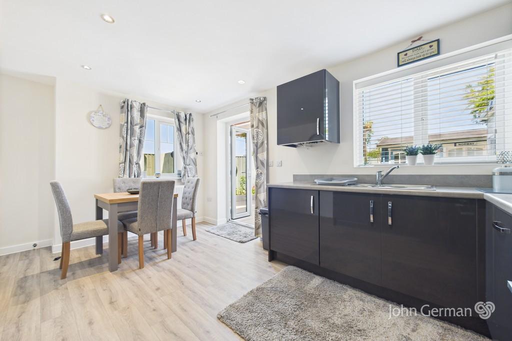 The lovely dining kitchen also extends to the depth of the property, immersed in natural light provided by the dual aspect windows and French doors which open to the garden. There is a range of base and eye level units with fitted worktops and an inset sink unit set below one of the windows, a fitted electric hob with a stainless steel splashback and extractor hood over, plus an electric oven under, and integrated appliances including a dishwasher, washing machine and fridge freezer.